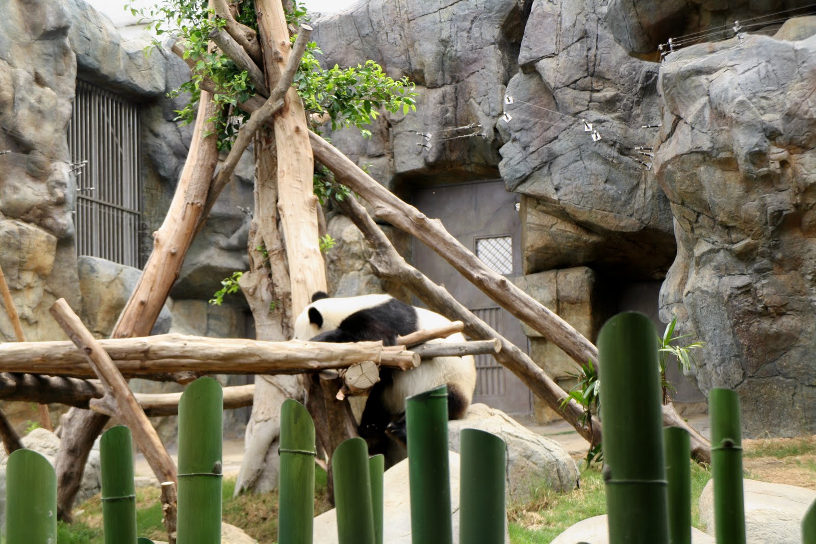 This is how Ocean Park stops the birds from begging. The fruit is nailed onto that log. Kinda cool.